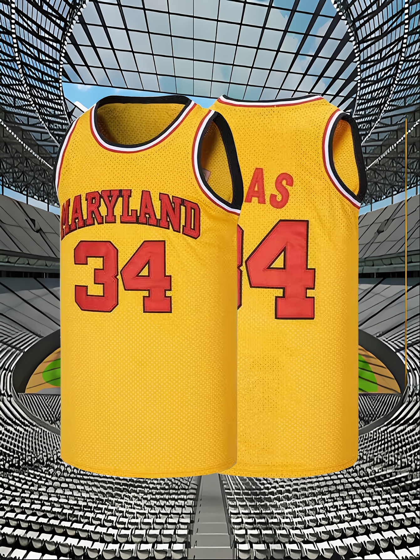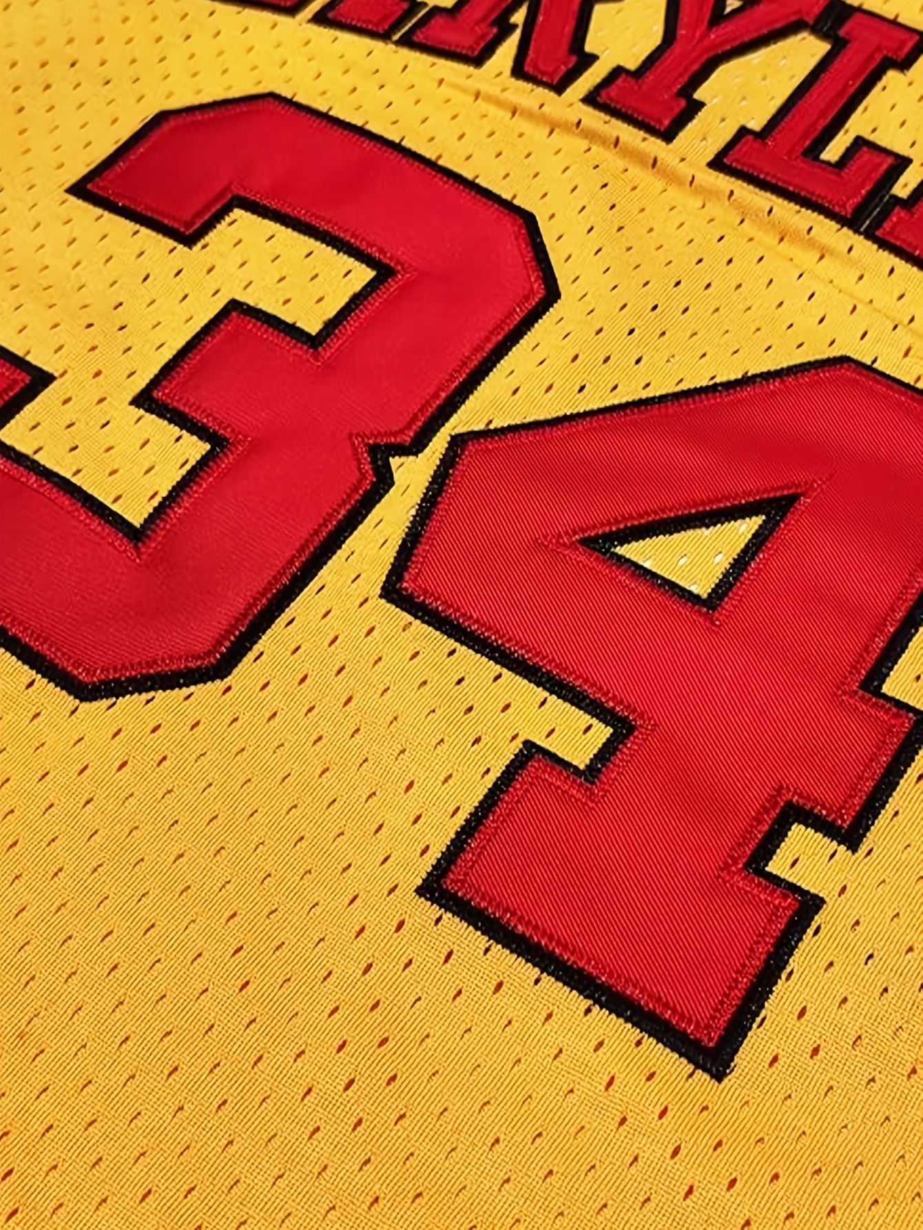 Men's #34 Yellow Basketball Jersey with Red Accents - Embroidered Polyester, Loose Fit, Breathable & Stretch Fabric for Sports, Casual Wear, and Outdoor Activities, Sizes S-XXXL