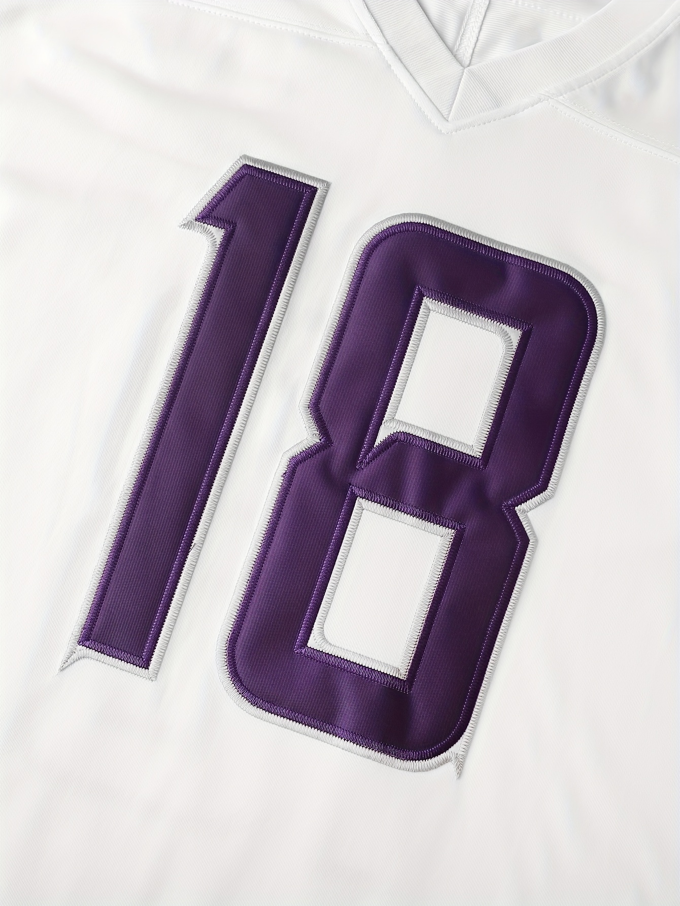 Men's American Football Jersey | V-Neck Polyester Top | Purple Number 18 | Multi-Size S-XXXL | Machine Washable & Dry Clean Safe | Ideal for Sports, Casual & Outdoor Activities | Breathable & Comfortable | Perfect for Training, Running, Hiking & Parties