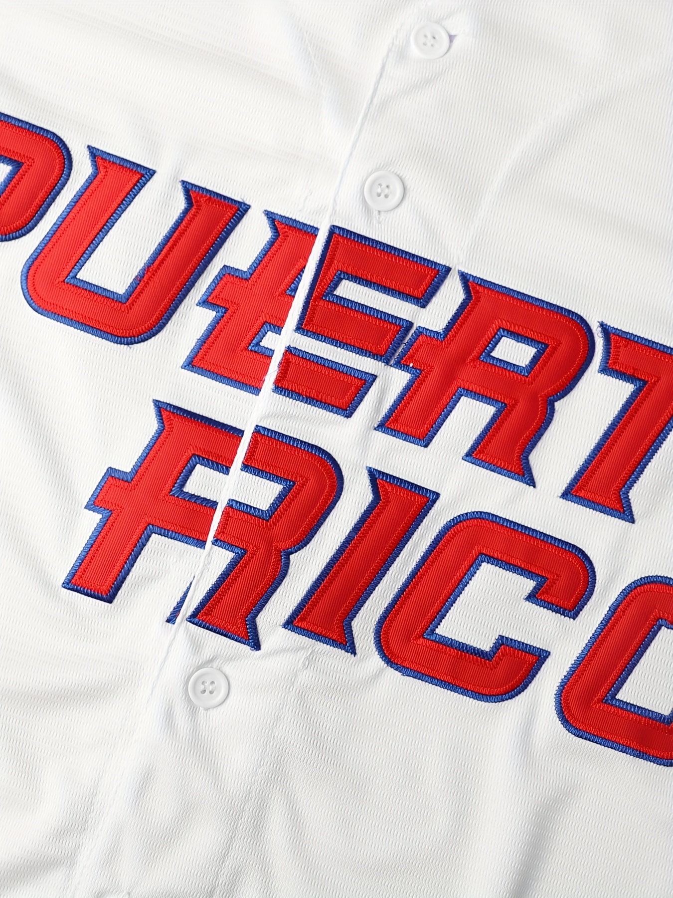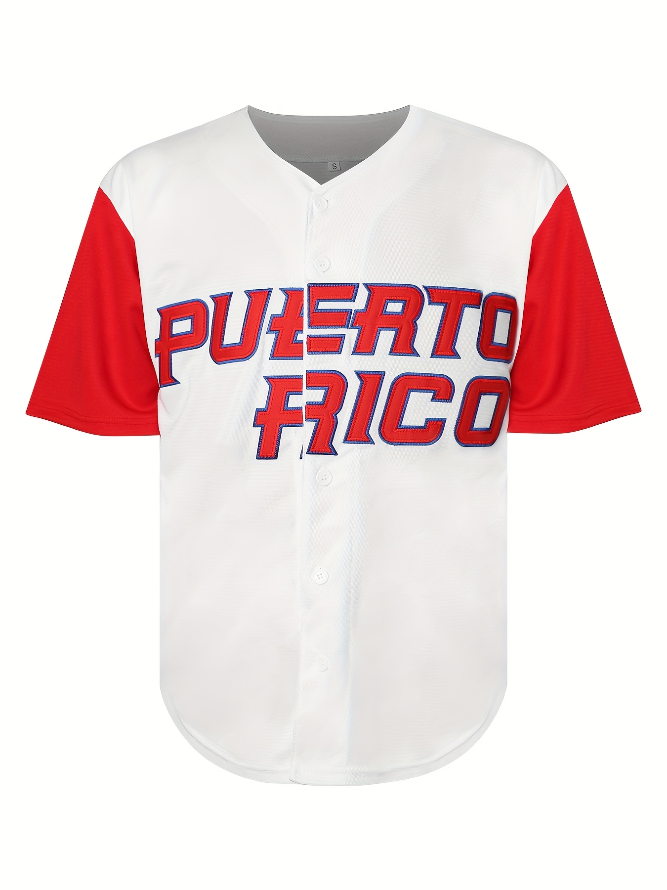 Men's Puerto Rico #1 Baseball Jersey - V-Neck, Button-Up, Short Sleeve, "Puerto Rico" Design, White & Red Color Scheme, Lightweight & Breathable Polyester for Sports & Casual Wear, Puerto Rico Shirt