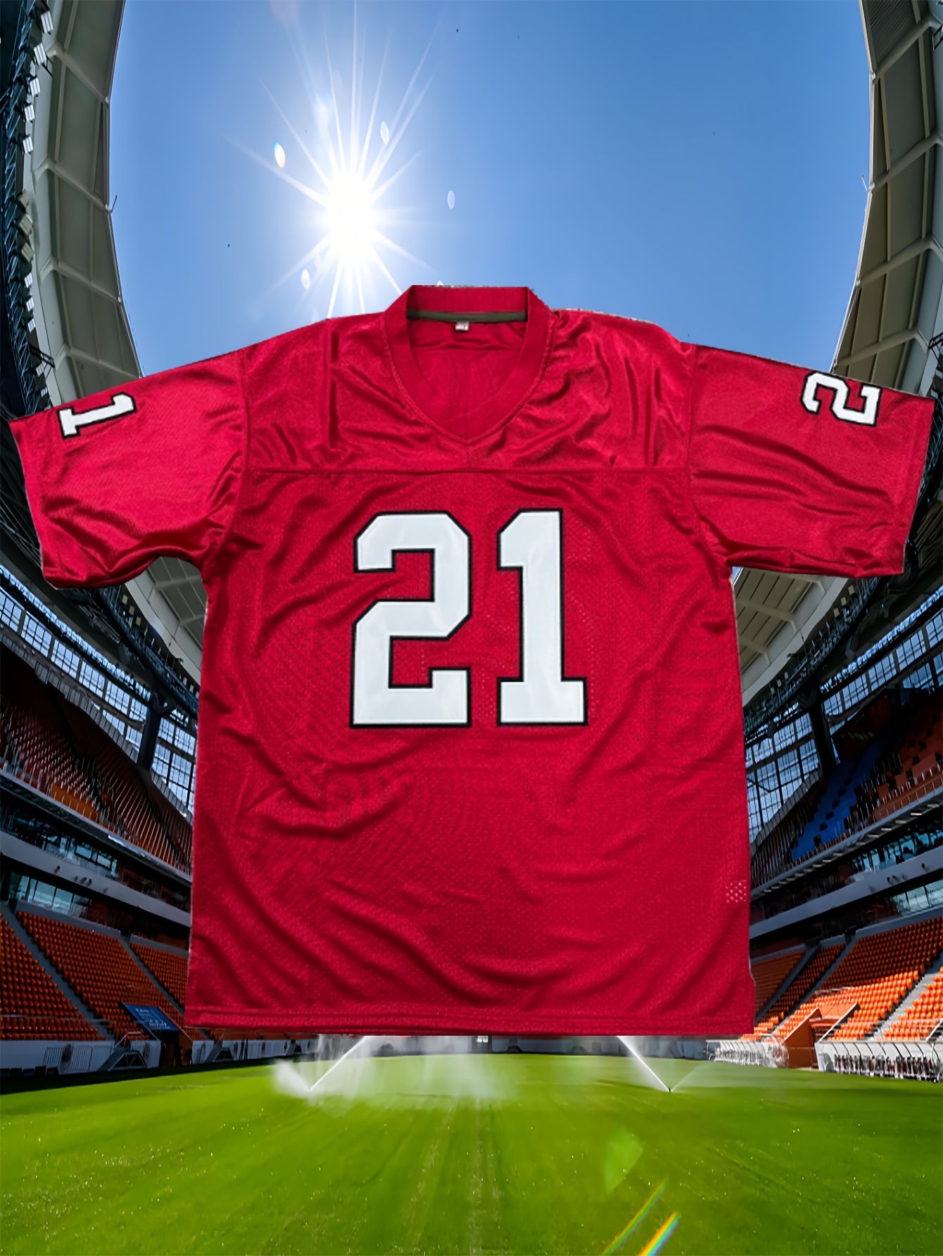Men'S Rugby Shirt # 21 Red Embroidered Rugby Shirt Loose Fit Polyester Knitted - Perfect For Casual And Sportswear Machine Washable - Sizes From S To XXXL