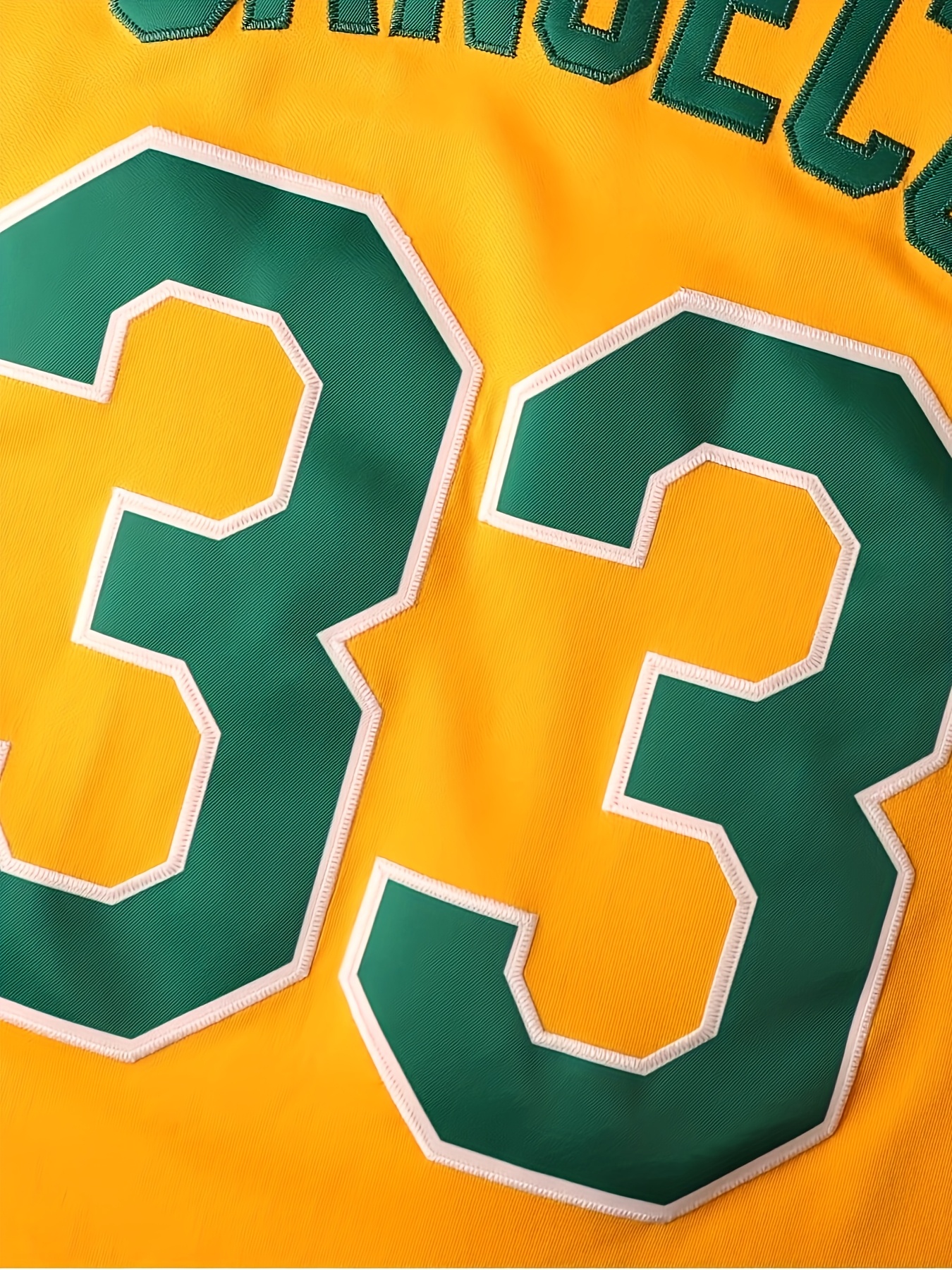 Men'S Yellow Embroidered Polyester Baseball Shirt # 33 Loose Knitted Fabric Breathable V-neck Sports Top Suitable For Spring, Summer, And Autumn Sizes S-3XL