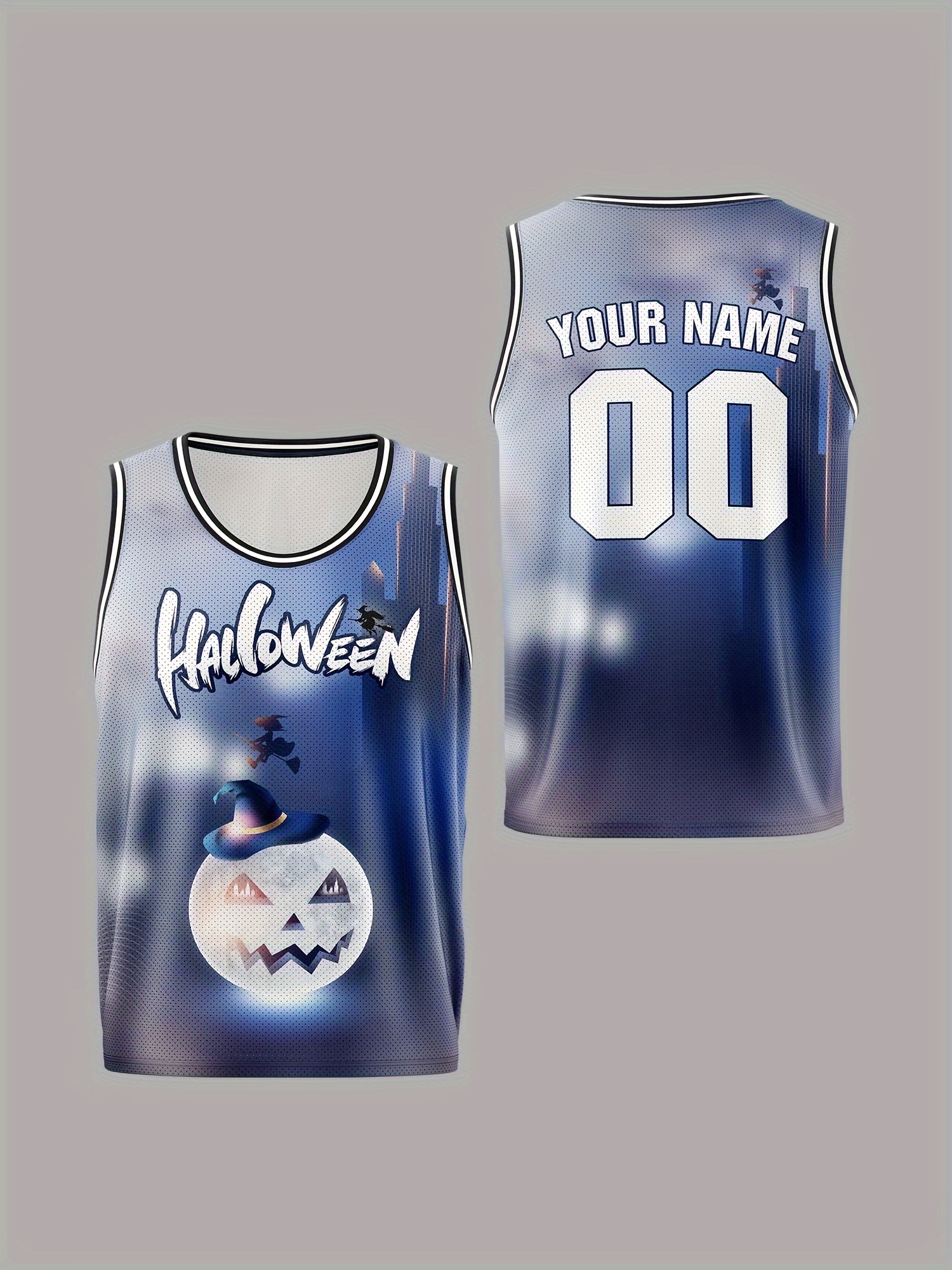 Boys' Customizable Name & Number Halloween Basketball Jersey - Polyester, 100% Polyester Breathable Sports Vest, Kids All-Over Print Tank Top for Training, Running, Outdoor Activities, Casual Parties, Loose Fit for Children Over 3 Years Old