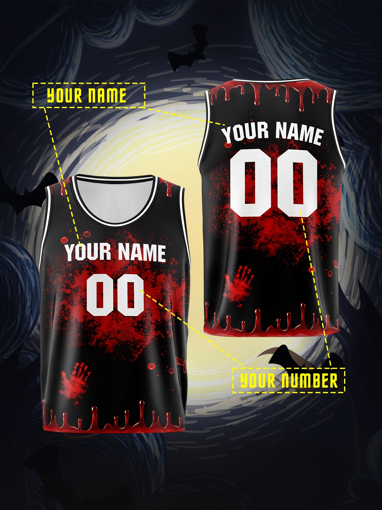 Customized Kids' Basketball Vest with Name and Number, Halloween Sports Jersey, Breathable Polyester Knit Fabric, All-Over Print, Loose Fit for Boys & Girls, Outdoor Sports & Casual Wear, Washable & Festive Occasions