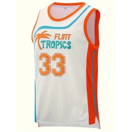 1pc Flint Tropics #33 Men'S Basketball Jersey - Vintage Style Breathable Sleeveless Polyester Uniform with Embroidery, Moisture-Wicking for Training, Competition, Casual Wear