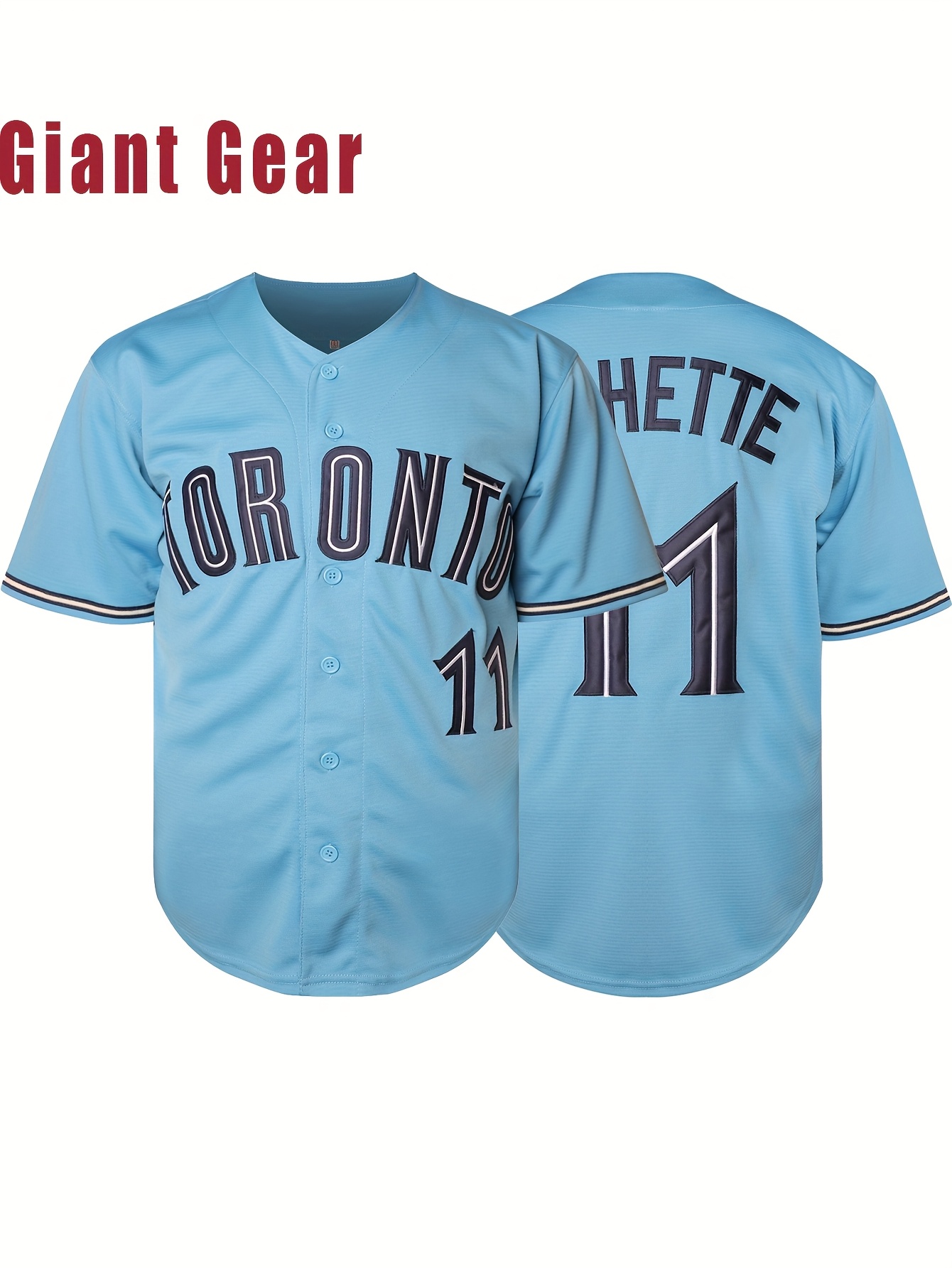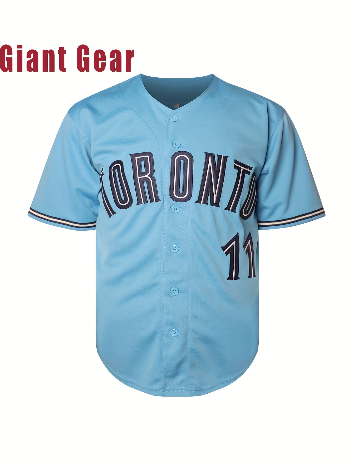Men'S # 11 Blue Baseball Shirt Breathable Embroidered Polyester Fiber V-Neck And Button Closure Loose Fit Suitable For Team Sports, Leisure, Outing And Training Sizes S-3XL