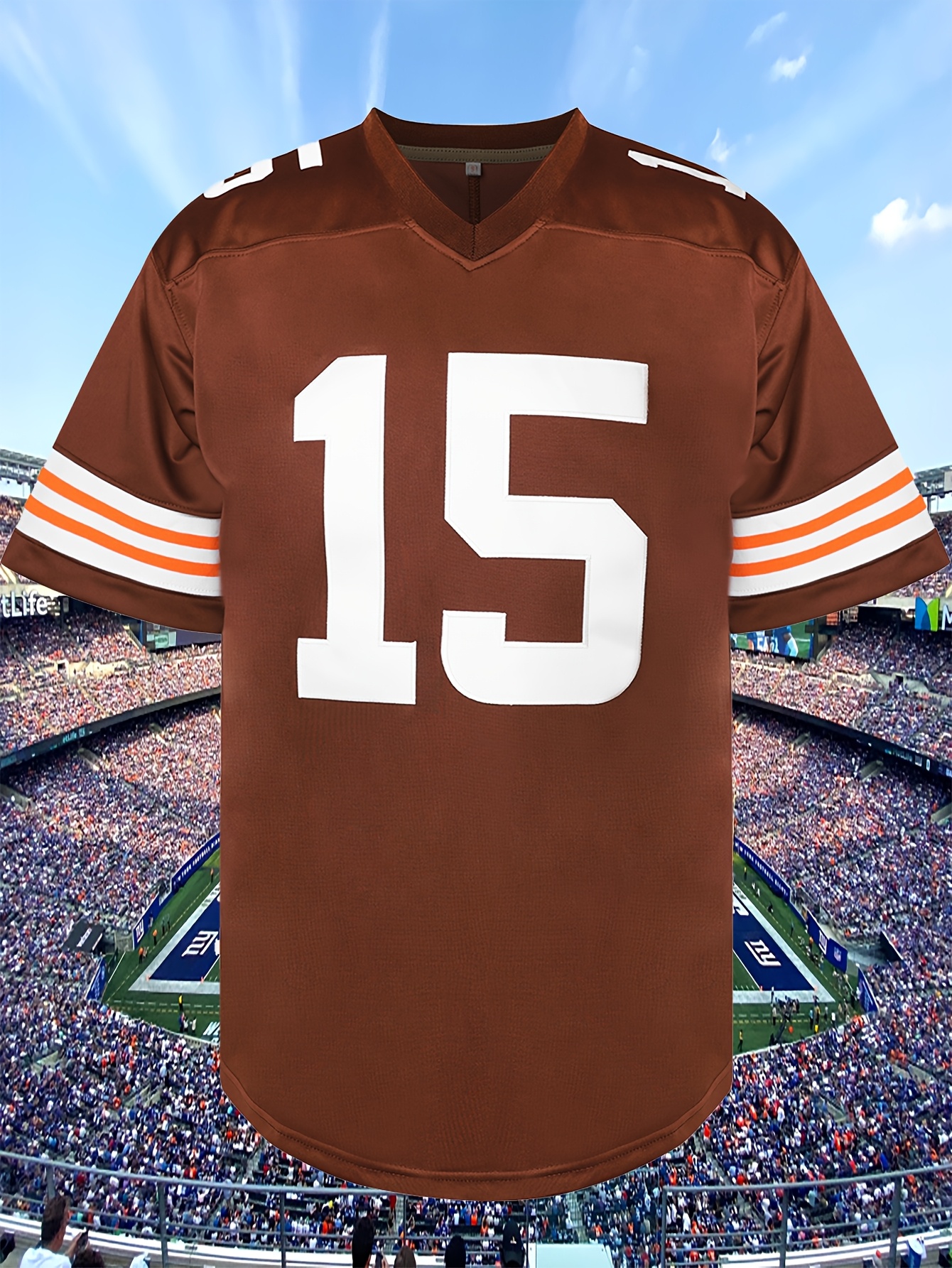 Men's #15 Brown American Football Jersey - V-Neck,, Polyester, Ideal for Training & Team Sports, Sizes S-XXXL, Team Jersey|Vneck Sports Top| Detailing