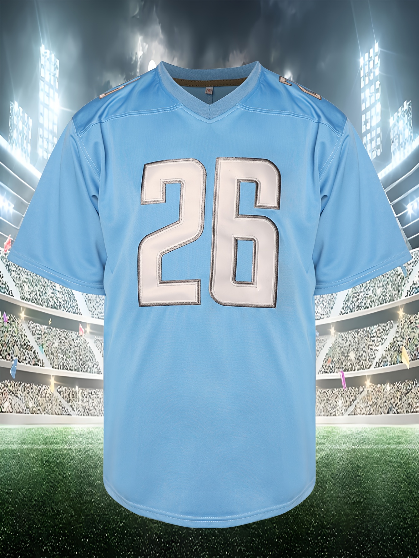 Men'S American Football Sweatshirt, # 26 Blue Breathable V-neck Embroidered Polyester Sportswear, Suitable For Street, Team Sports, Beach, Loose Knitted Fabric, S-3XL
