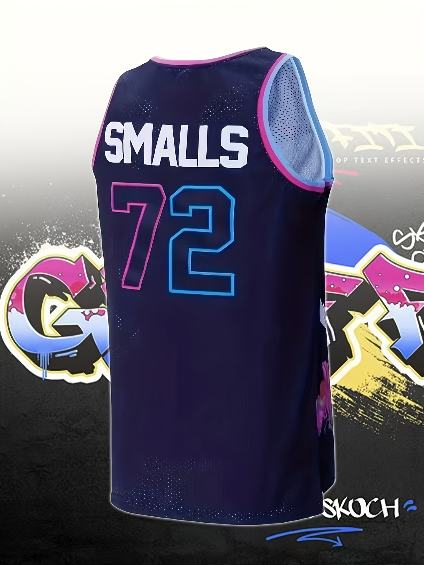 Men's Bad Boy Basketball Jersey 90s Hip-Hop Style - SMALLS 72 Graphic, Breathable Polyester Mesh, Loose Fit Sleeveless Tank Top for All-Season Casual & Sports Wear, Vibrant Design | Moisturewicking Fabric