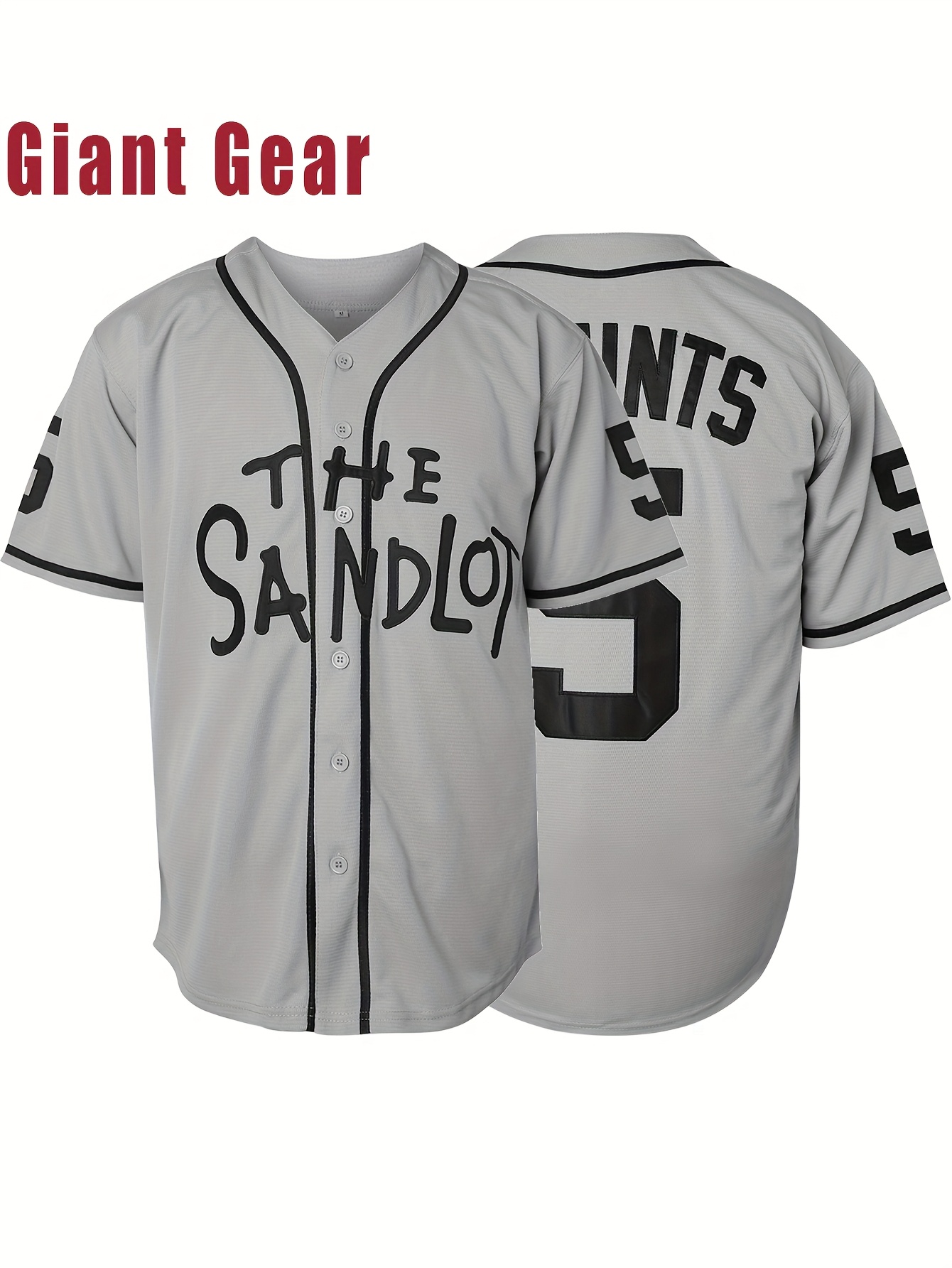 Men's Baseball Jersey #5 Gray - Breathable V-Neck Loose Fit Letter & Number Design for Team Sports, Outdoor Activities, Casual Wear & Parties - Machine Washable, Sports Team Apparel | Detailing