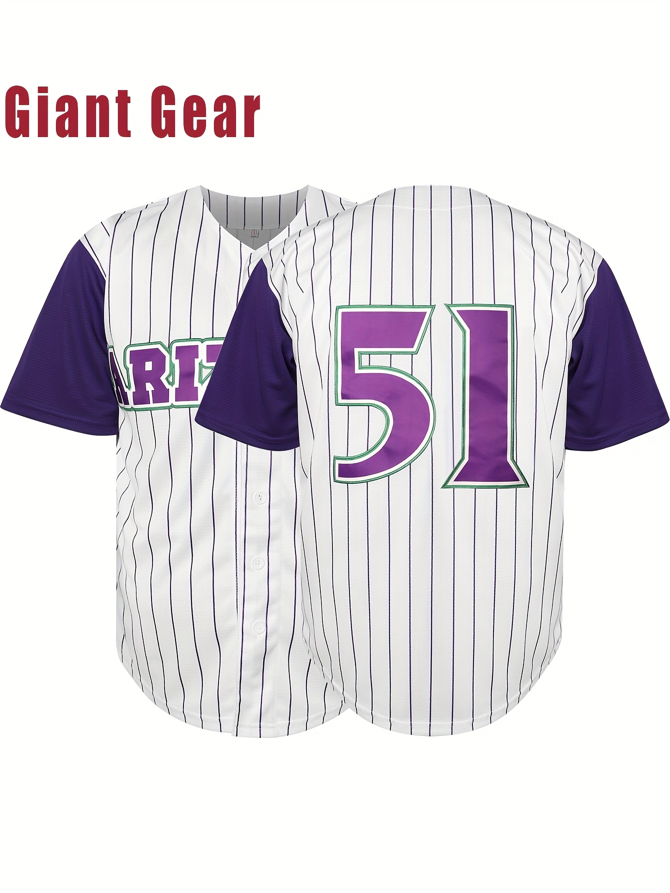 Men's Baseball Jersey Classic #51 White Stitched Design V-Neck Short Sleeve Breathable Shirt - Loose Fit for Training, Games, Casual & Outdoor Activities - Machine Washable