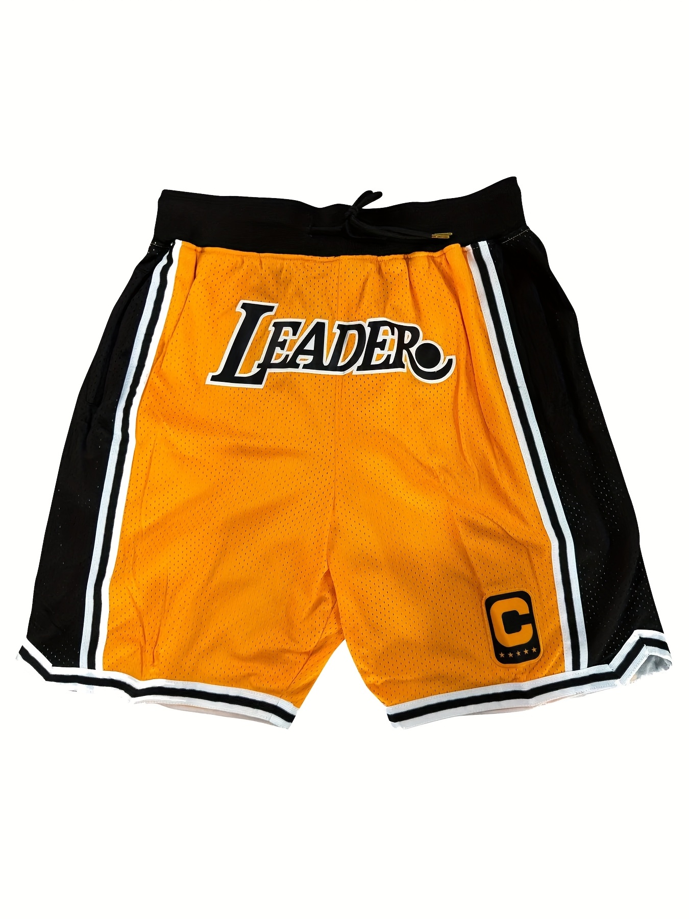 Men's Breathable Quick-Dry Basketball Shorts with Drawstring & "LEADER" Embroidery - Yellow & Black, Loose Fit for Sports, Training, and Casual Wear