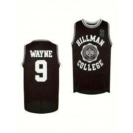 Wayne #9 Hillman College Black Basketball Jersey - Sleeveless Sports Shirt for Men, Moisture-Wicking & Breathable Polyester, Perfect for Casual, Party, and Athletic Wear, Athletic Apparel | Sleeveless Top | Detailing
