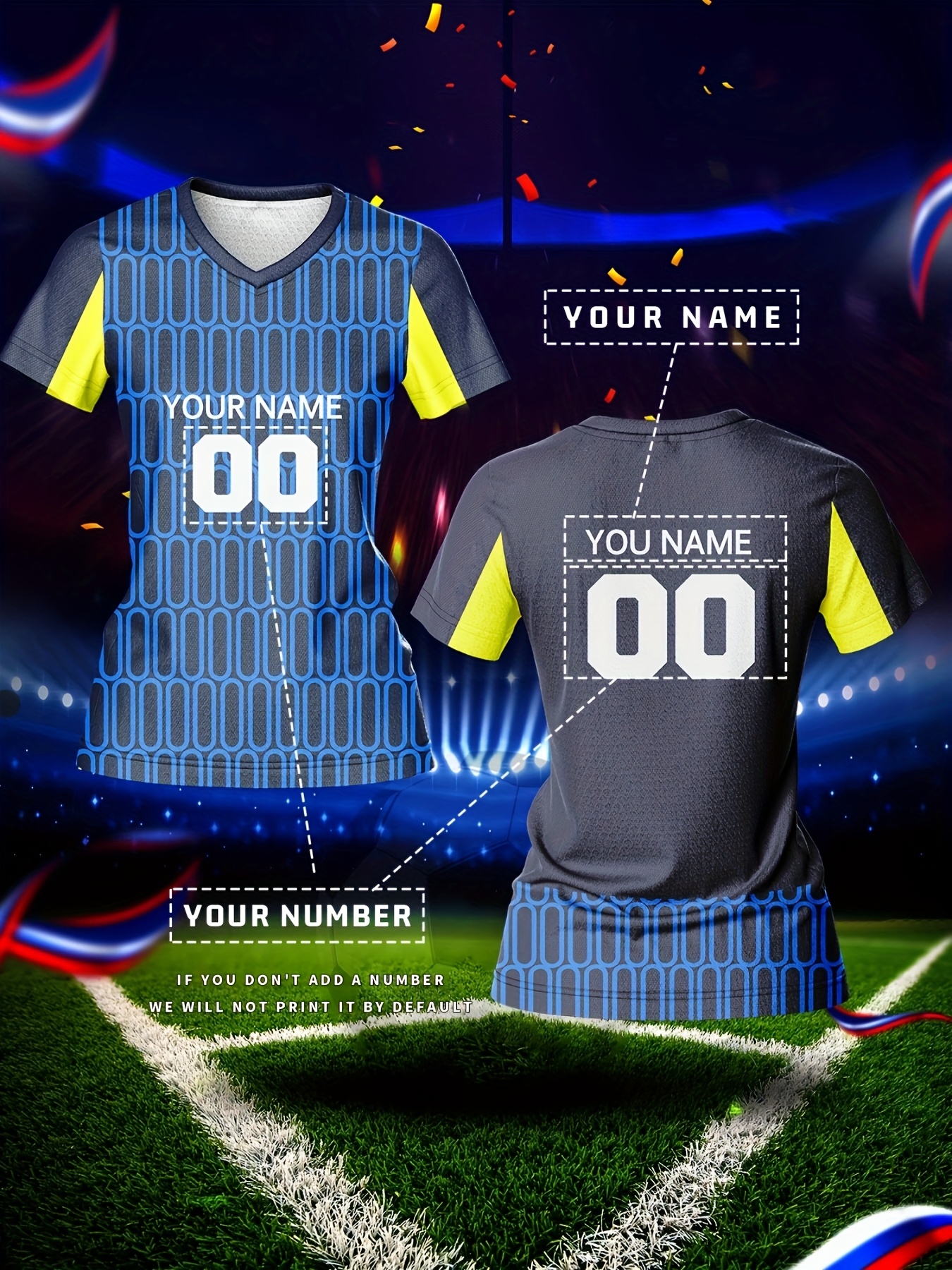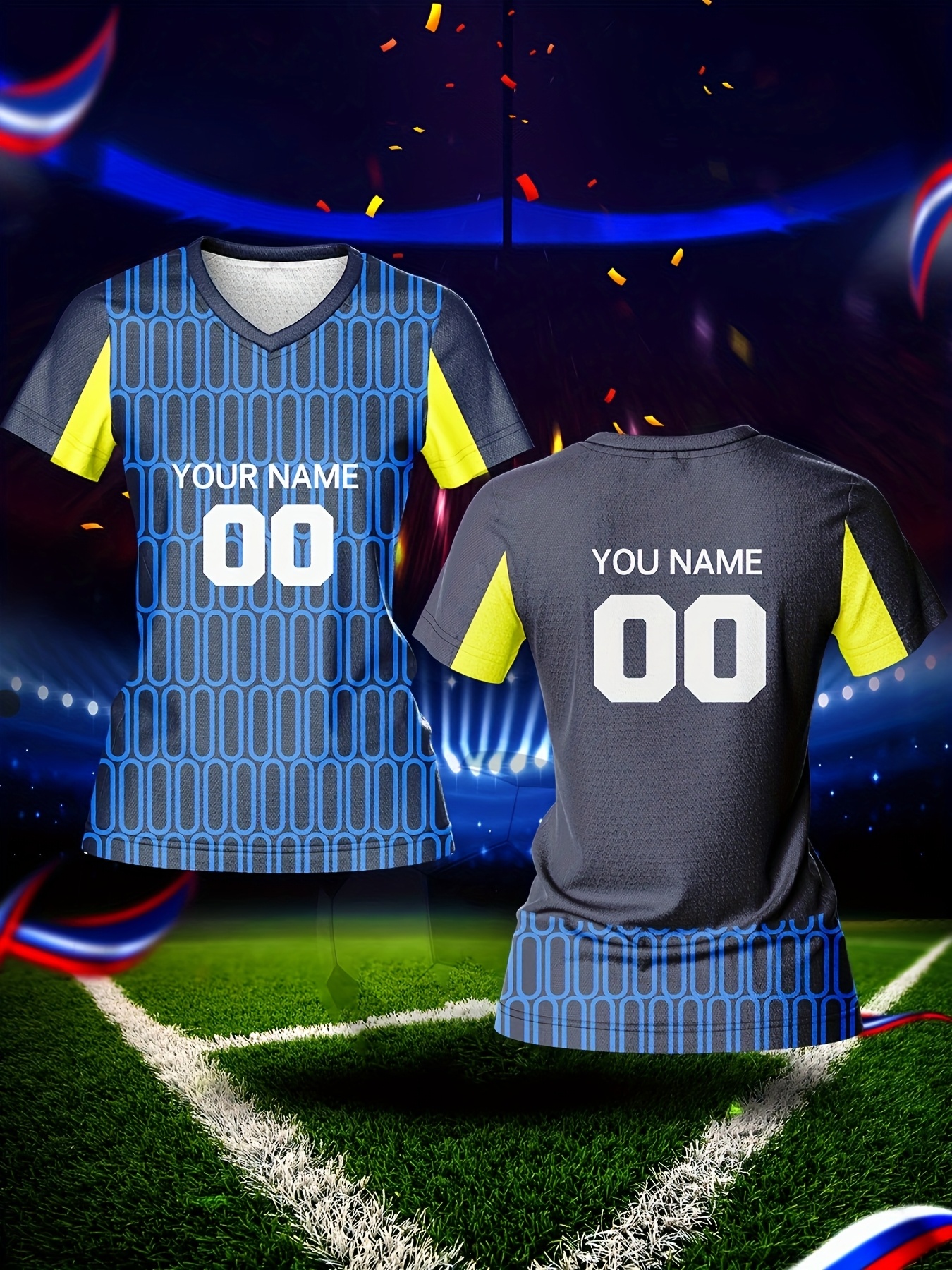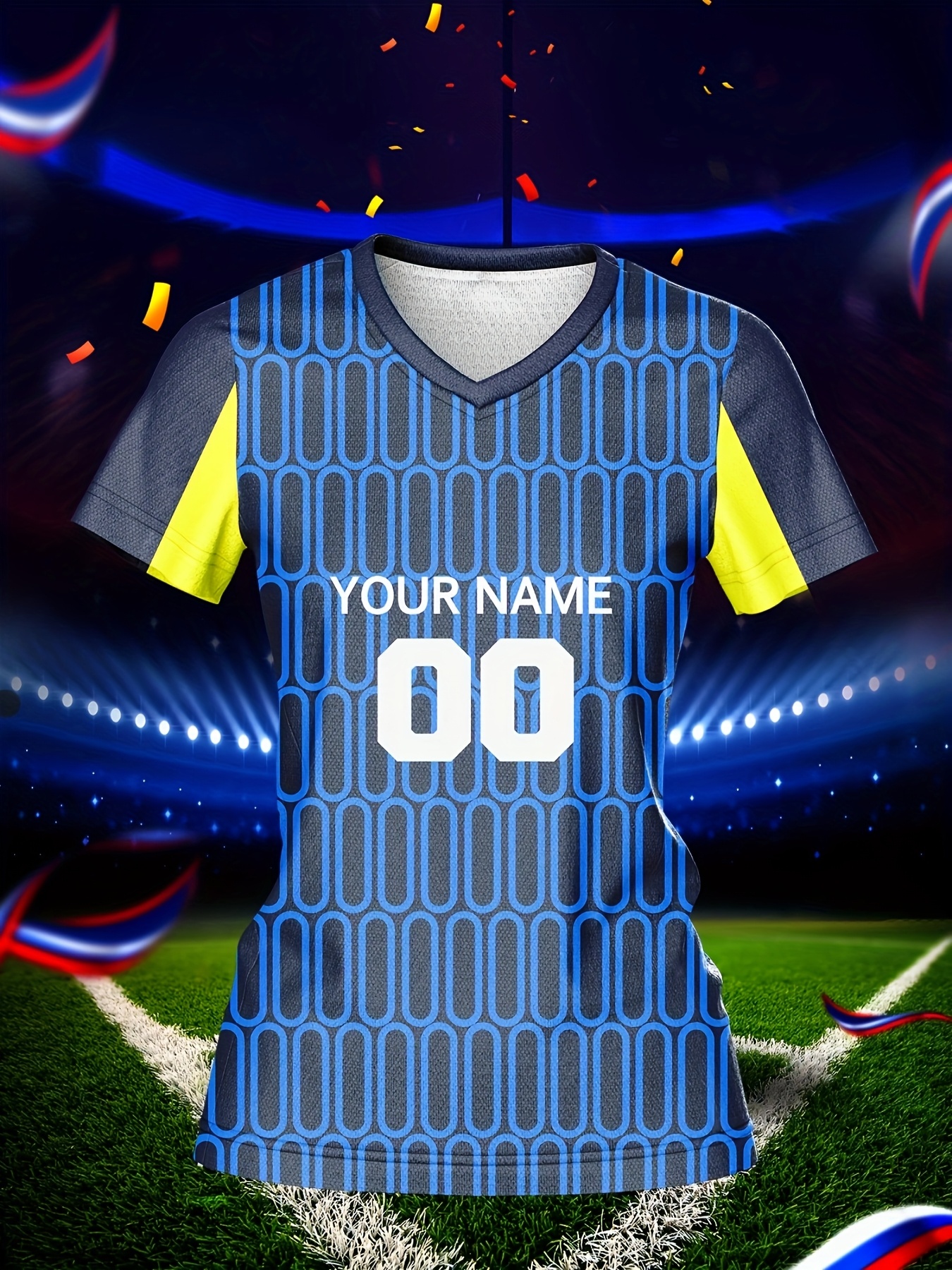 [Quickdry] Customizable Women's V-Neck Soccer Jersey - Personalized Name & Number, Breathable Polyester, Quick-Dry Sports Top for Team Training & Casual Wear