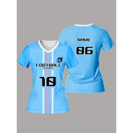 Customizable Women's V-Neck Football Jersey Top - Personalized Name & Number, Breathable, Quick-Drying, Polyester, Ideal for Team Training & Casual Wear, Football Accessories