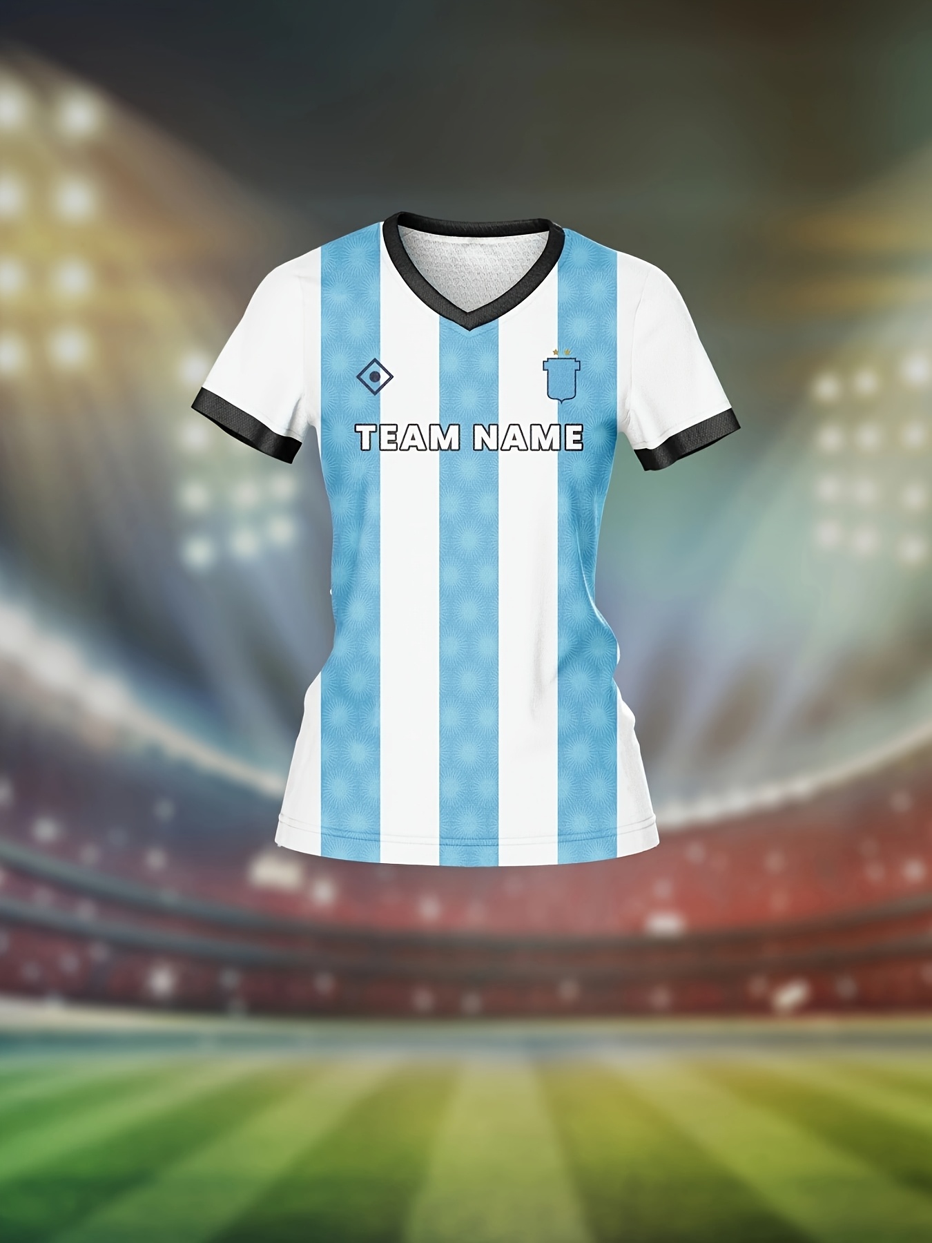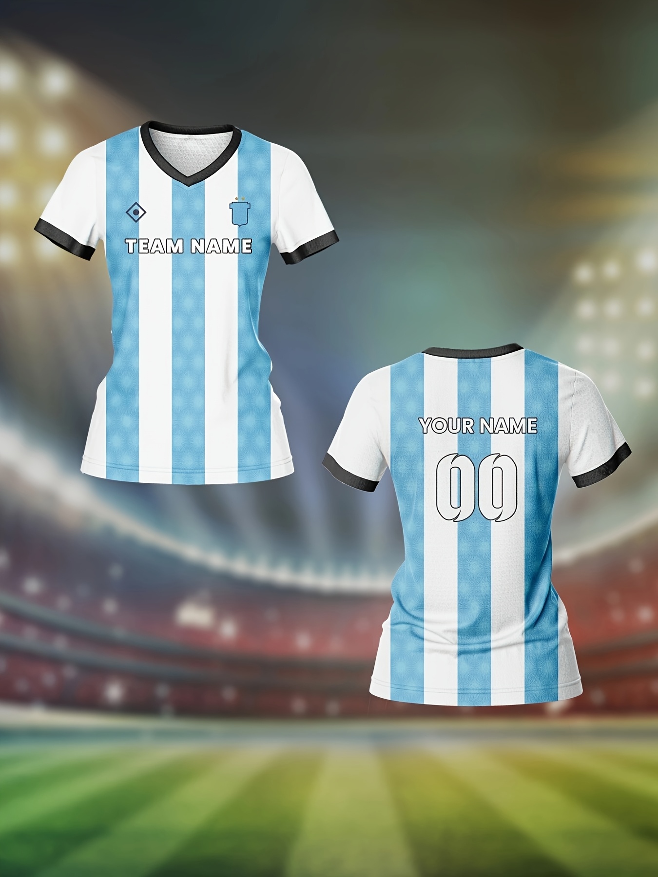 Customizable Women'S V-Neck Football Jersey - Light Blue & White Checkered, Breathable & Quick-Dry, Perfect for Team Training & Fitness, Team Branding Apparel | Checkered Pattern | Comfortable Fit, Football Jersey