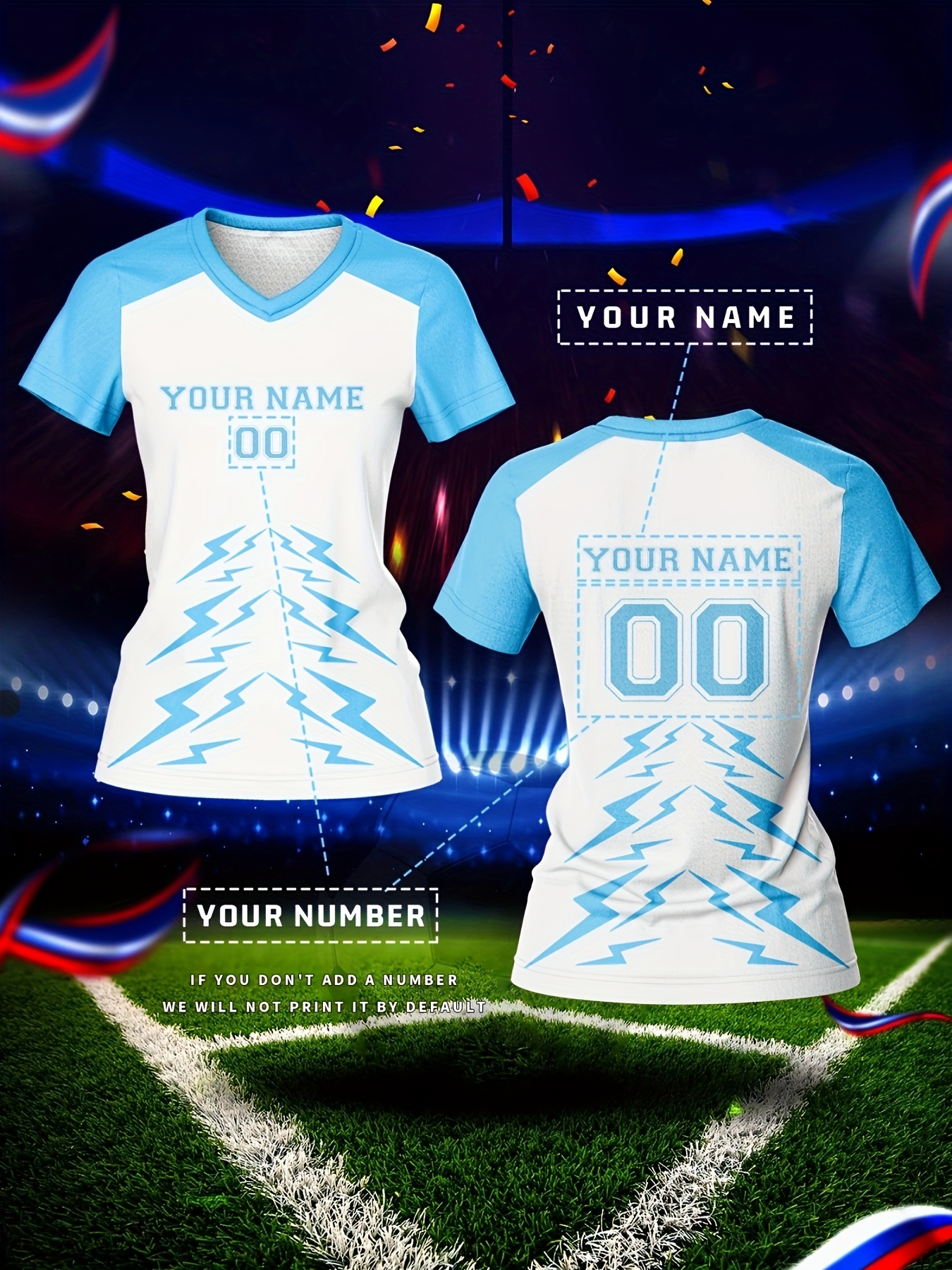 Customizable Women's V-Neck Football Jersey - Personalized Name & Number, Quick-Drying, Breathable Polyester, Ideal for Team Sports, Fitness & Casual Wear