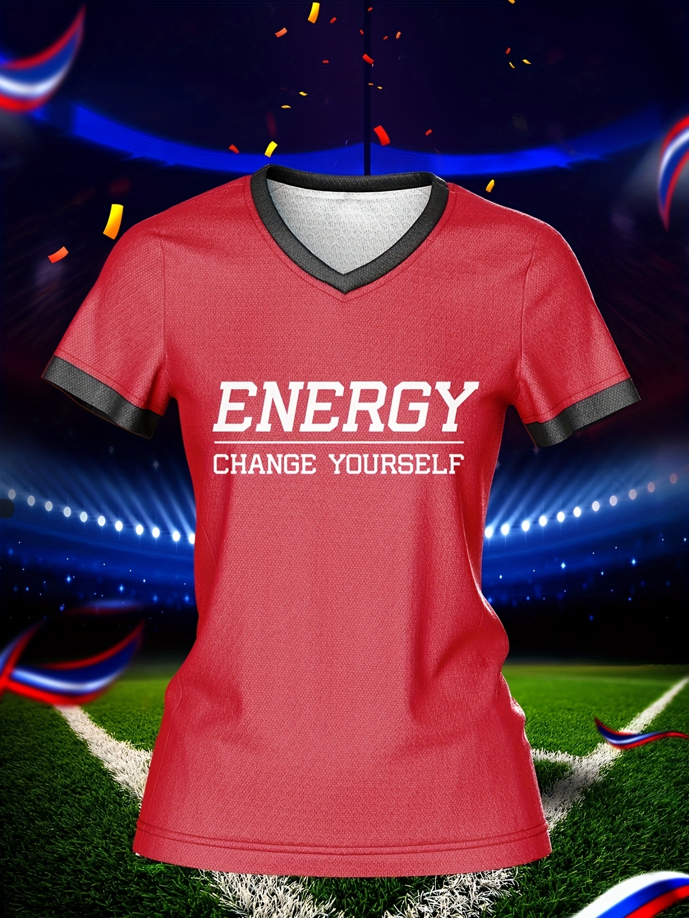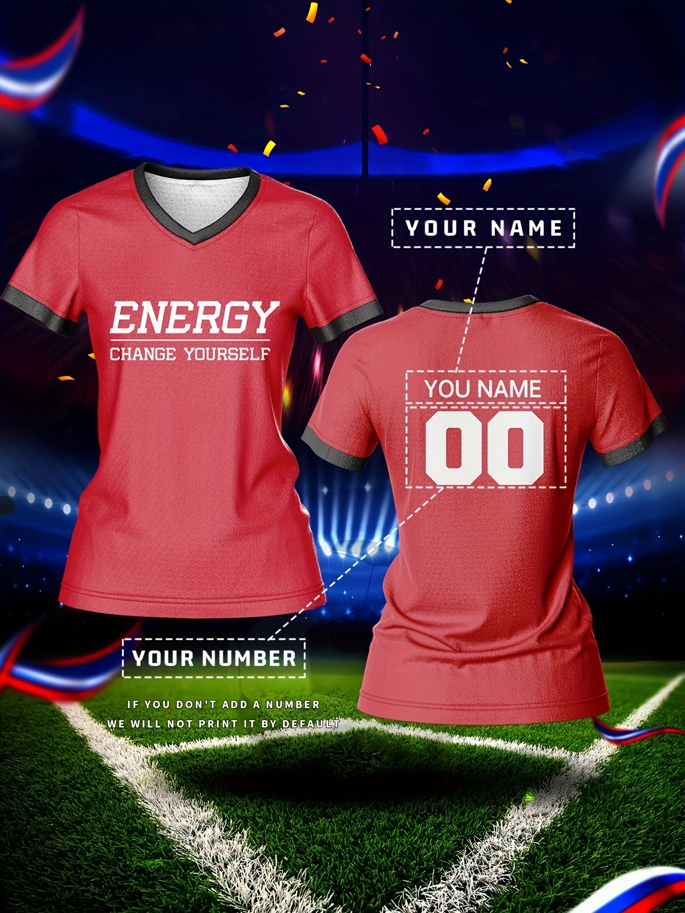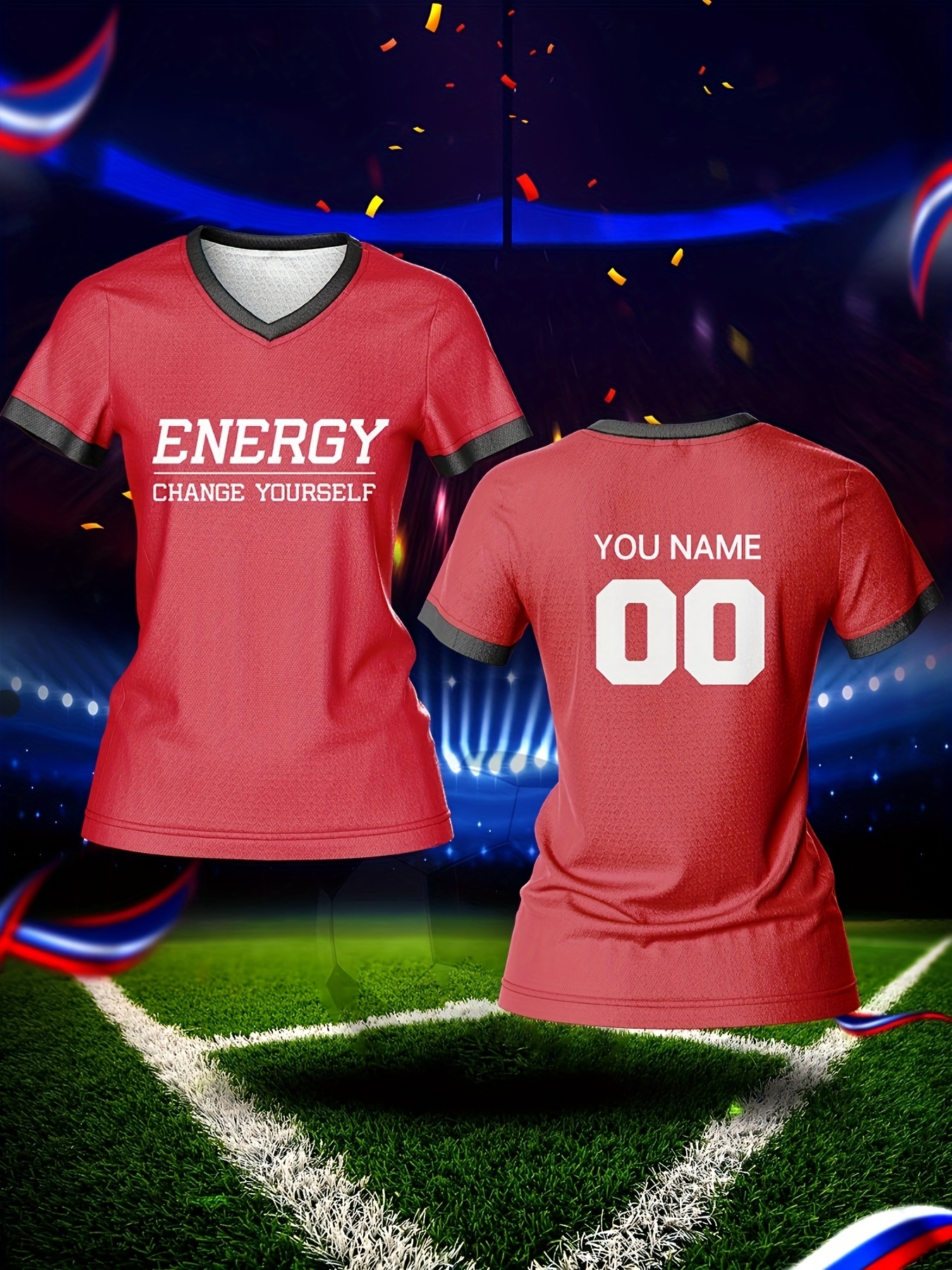 Customizable Women's V-Neck Football Jersey Top - Personalized Name & Number, Breathable, Quick-Drying, Polyester, Ideal for Team Training & Casual Wear, Football Accessories