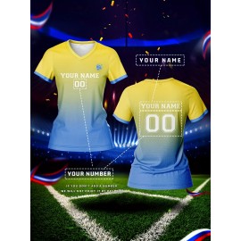 Customized Name & Number Women's V-Neck Football Shirt - Breathable Quick-Dry Moisture-Wicking Jersey, Gradient Color Design for Team Training, Sports Fitness & Casual Wear (Spring/Summer/Fall), Breathable Material