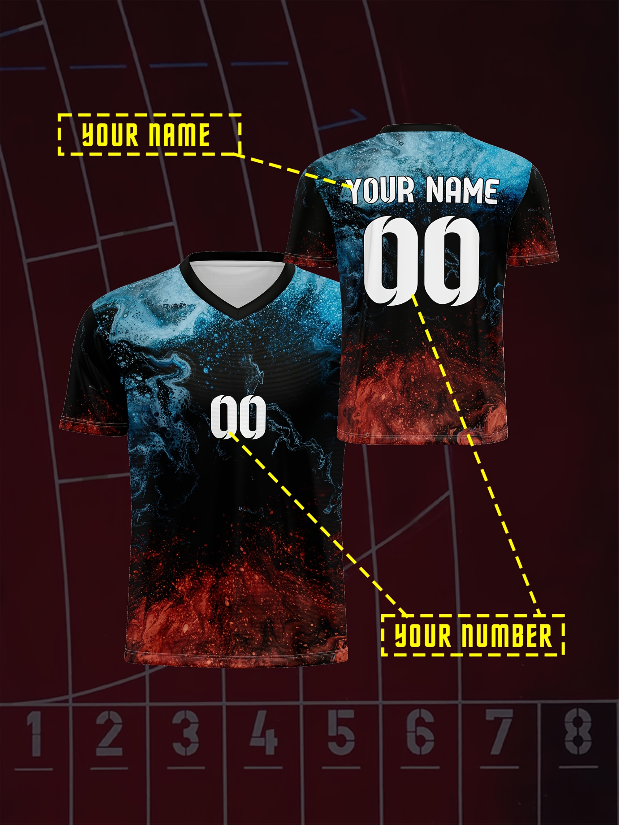 1pc Customizable V-Neck Soccer Jersey for Kids - 100% Polyester, All-Over Print, Personalized Name & Number, Medium Stretch, Regular Fit, for Boys & Girls, Ideal for Sports, Casual Wear, Training, Beach, Birthday - Spring/Summer/Fall