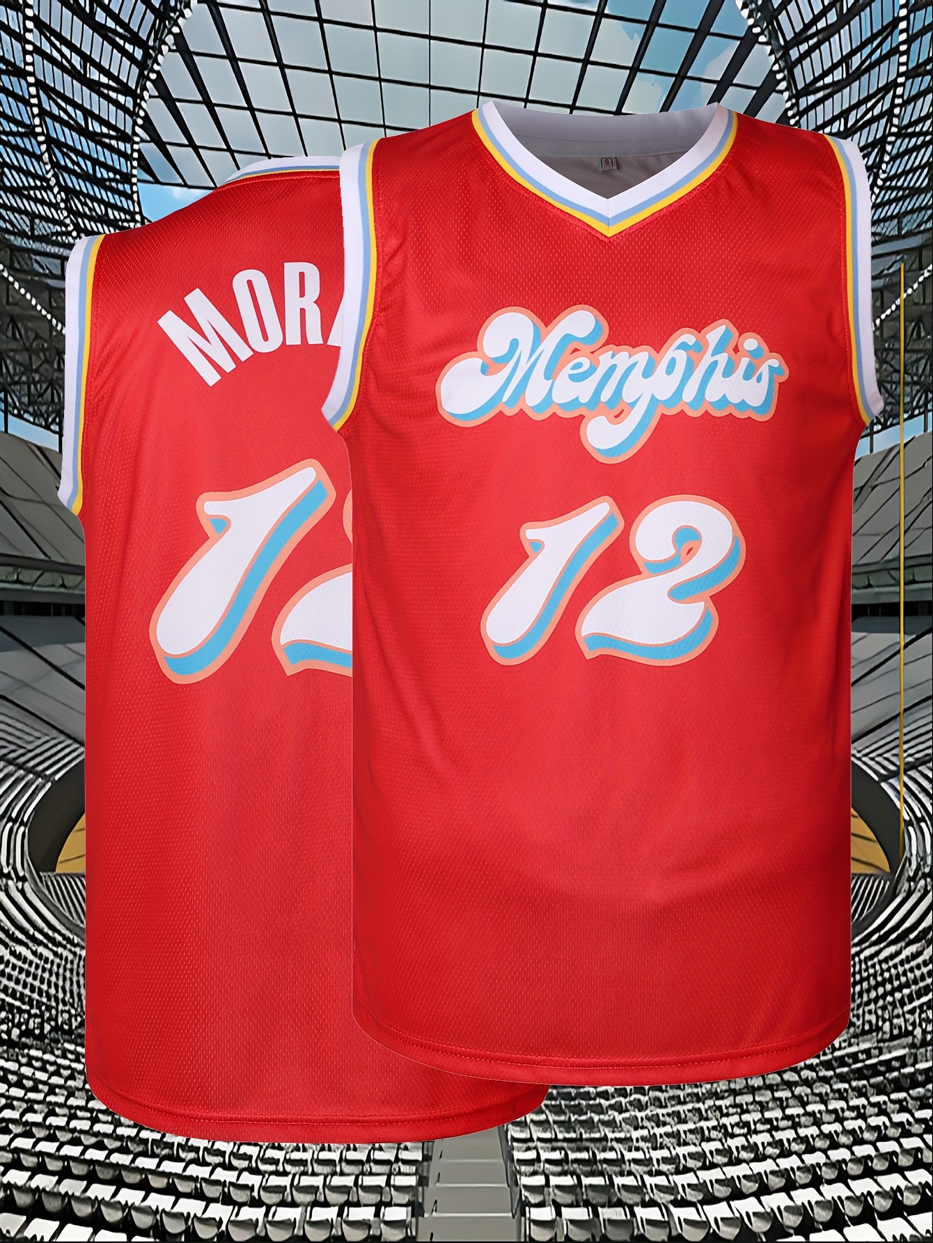 Men's #12 Red Basketball Jersey - Vibrant Orange & Blue Design, Breathable Polyester Mesh for Training, Competition, and Team Sports, Sizes S-XXXL