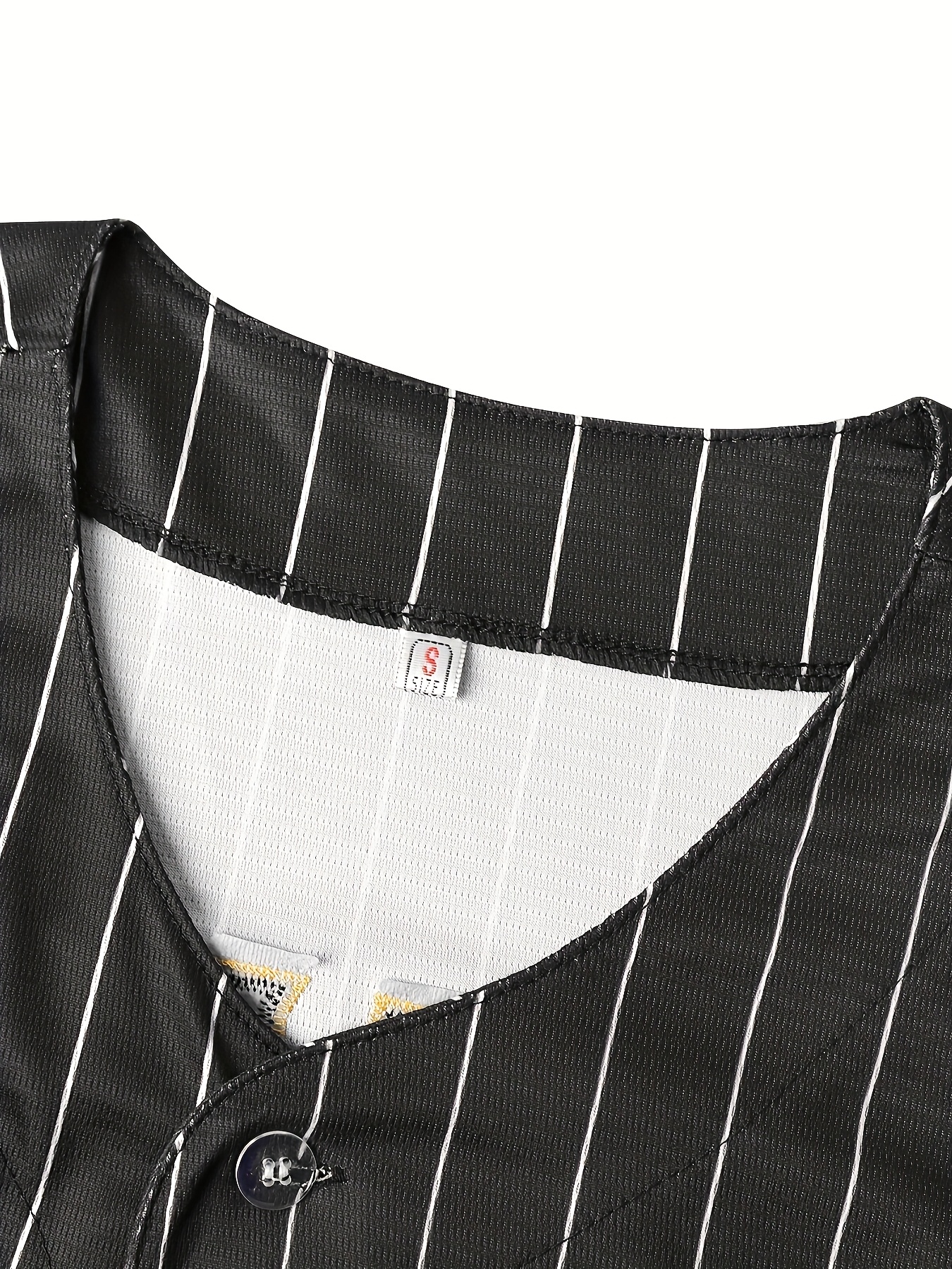 Men'S # 16 Black And White Striped Baseball Shirt Loose Fit Button Closed Casual And Sportswear Multi Functional Running Training Hiking Cycling Fishing Ideal Size S-3XL