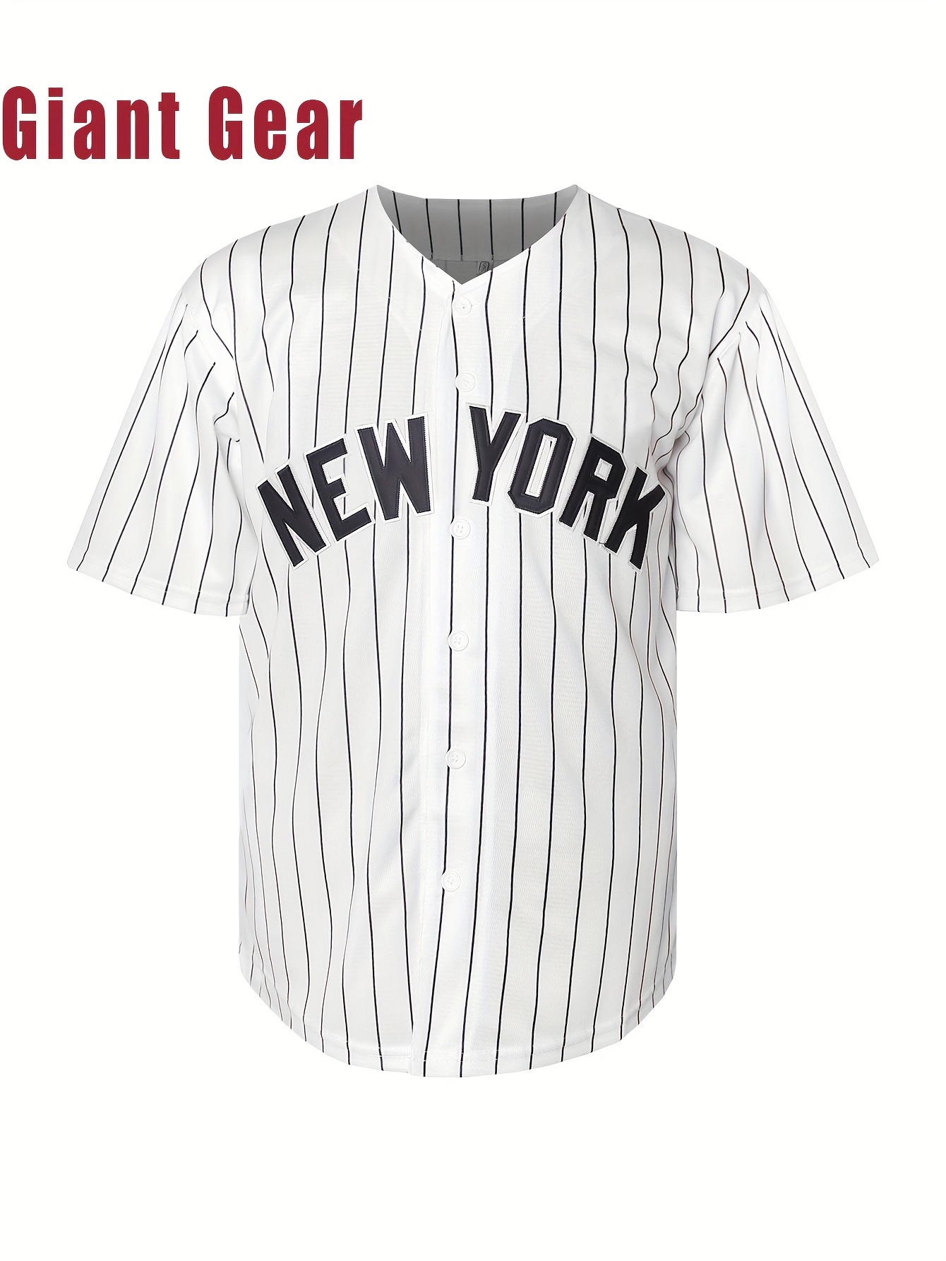 Men's #7 NY Embroidered Baseball Jersey - Breathable V-Neck, Black & White Striped Retro Design, Casual & Sports Wear for Parties, Training, and Outdoor Activities