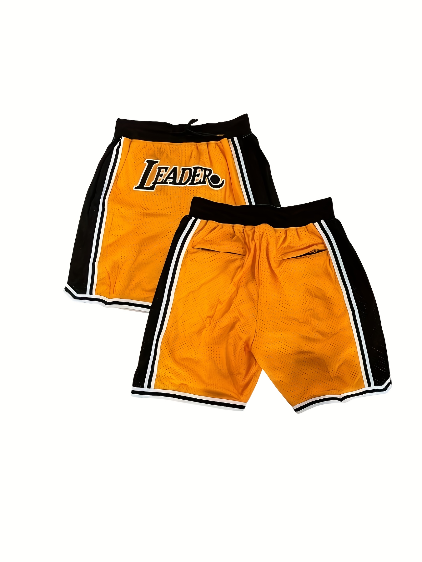 Men's Breathable Quick-Dry Basketball Shorts with Drawstring & "LEADER" Embroidery - Yellow & Black, Loose Fit for Sports, Training, and Casual Wear
