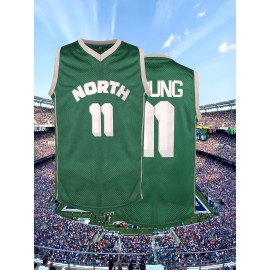 Men's #11 Green Basketball Jersey, V-Neck Sleeveless Sports Uniform, Polyester, Machine Washable, Ideal for Training & Team Activities, Sizes S-XXXL
