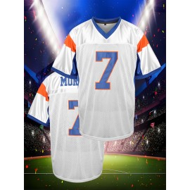 Men's #7 Embroidered Polyester Football Jersey, V-Neck Breathable Sports Shirt for Casual & Team Activities, Loose Fit Knit Fabric Top for Running, Hiking, Cycling - S-3XL