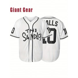 Men's American Baseball Jersey #10 - White V-Neck Loose Fit "The Sandlot" Design, Machine Washable Sportswear for Training, Outdoor & Casual Wear (Spring/Summer/Fall) S-3XL, Breathable Fabric