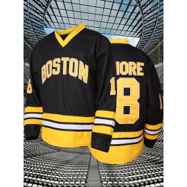 Men's Black Ice Hockey Sweater #18 - Breathable V-Neck, Loose Fit for Competition Training, Streetwear & Outdoor Activities, All Seasons, Sizes S-XXXL, 100% Polyester, Machine Washable, Hockey Jersey