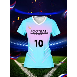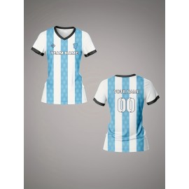 Customizable Women's V-Neck Football Jersey Top - Personalized Name & Number, Breathable, Quick-Drying, Polyester, Ideal for Team Training & Casual Wear, Football Accessories