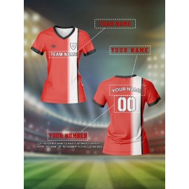 Customizable Women's V-Neck Soccer Jersey - Personalized Name & Number, Red & White Two-Tone Design, Breathable & Quick-Dry for Team Sports, Fitness & Casual Wear, Soccer Accessories, Sports Casual Wear, Custom Team Apparel