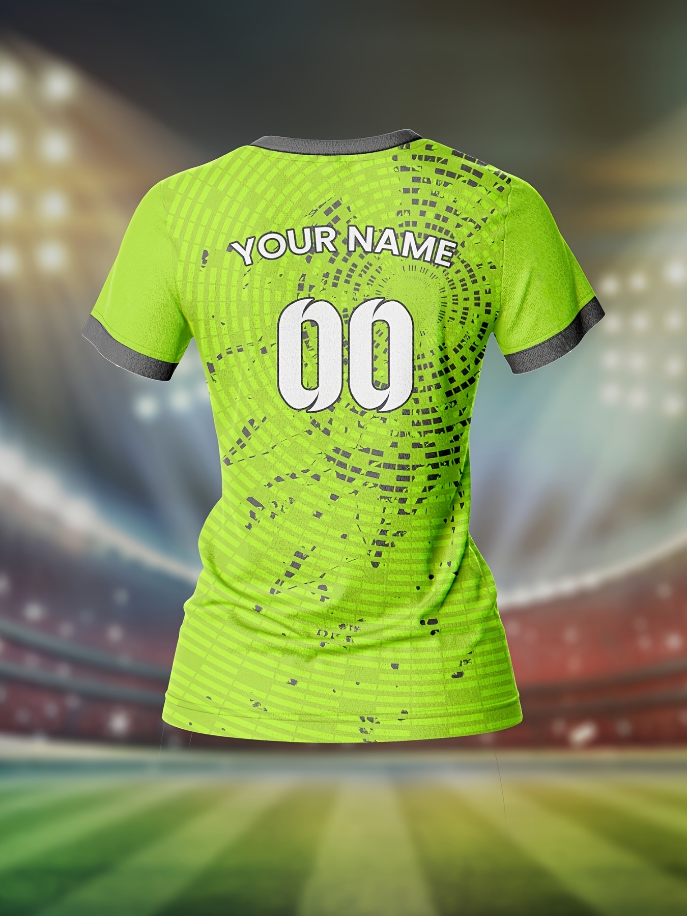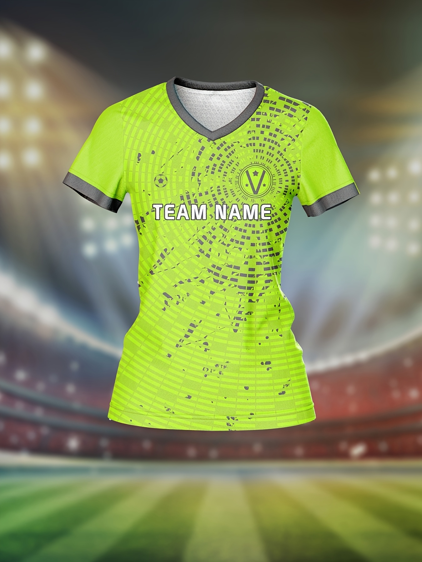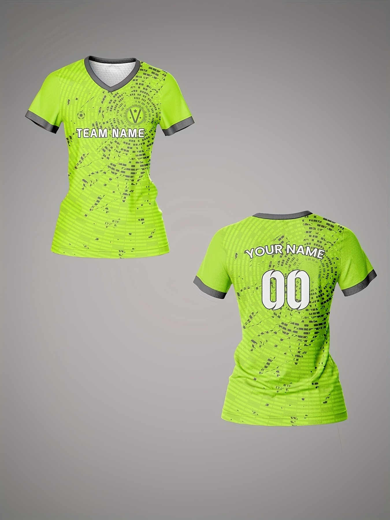 Custom Women's V-Neck Football Jersey - Personalized Name & Number, Lime Green with White Splatter Design, Breathable Moisture-Wicking Quick-Dry Fabric, Loose Fit for Team Training, Fitness & Casual Wear, Sports Training Gear, Comfortable Sports Apparel