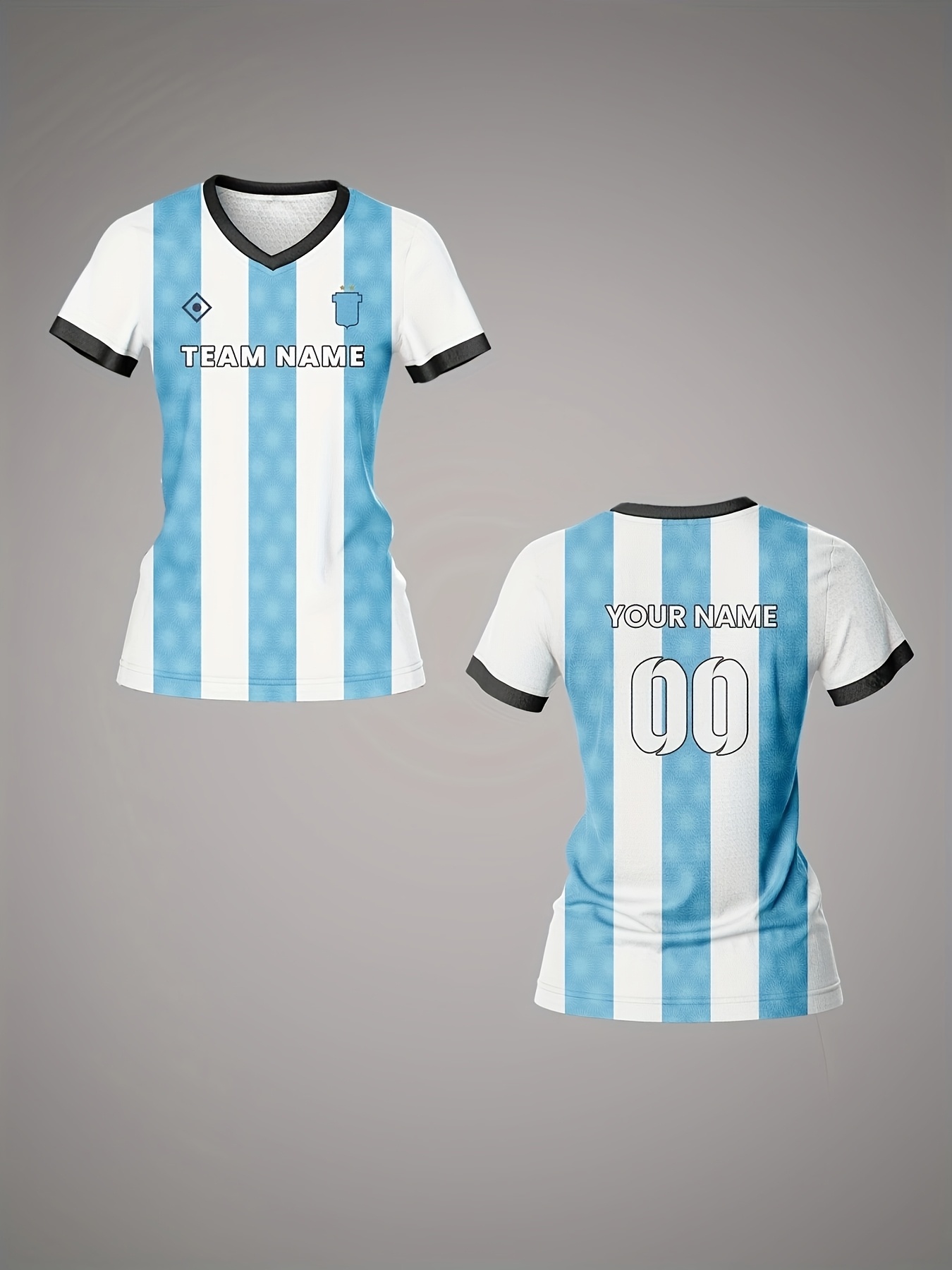 Customizable Women'S V-Neck Football Jersey - Light Blue & White Checkered, Breathable & Quick-Dry, Perfect for Team Training & Fitness, Team Branding Apparel | Checkered Pattern | Comfortable Fit, Football Jersey