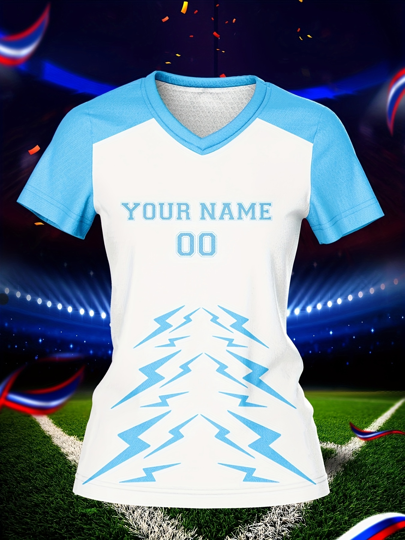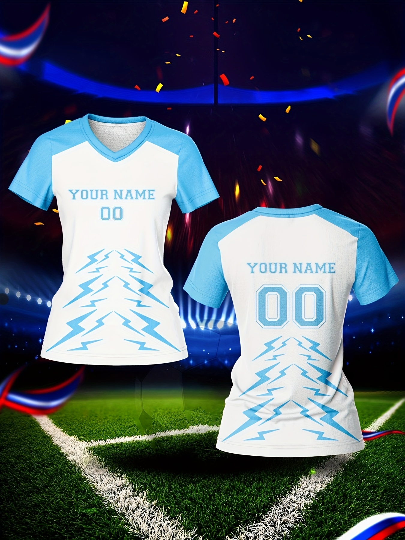 Customizable Women's V-Neck Football Jersey - Personalized Name & Number, Quick-Drying, Breathable Polyester, Ideal for Team Sports, Fitness & Casual Wear