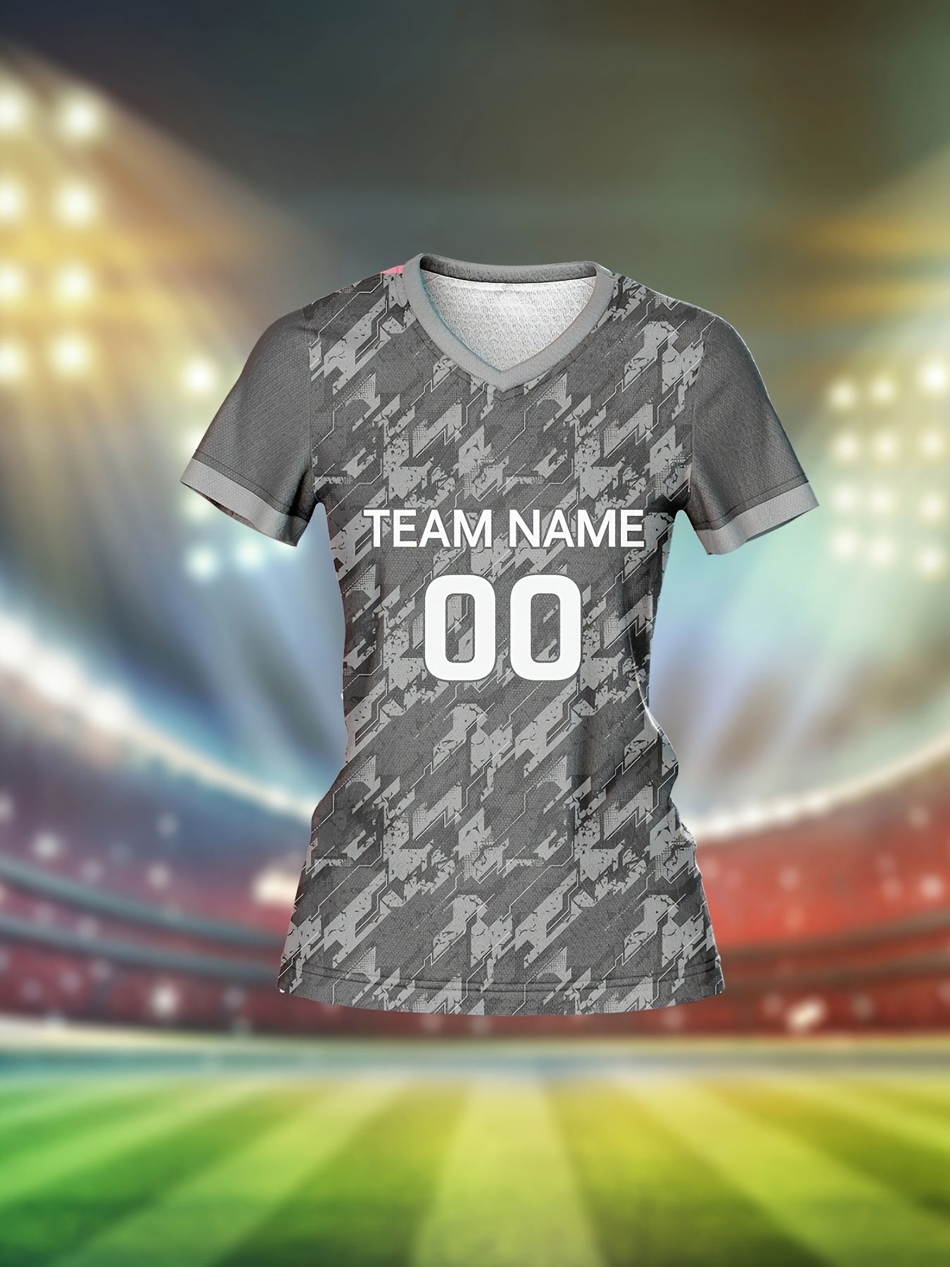 Customizable Women'S V-Neck Football Jersey - "TEAM NAME" & "YOUR NAME" Print, Comfortable Polyester, Breathable & Quick-Dry, Ideal for Training & Fitness, Sports Jersey|Vneck Top|Stretchy Fabric, Football Jersey