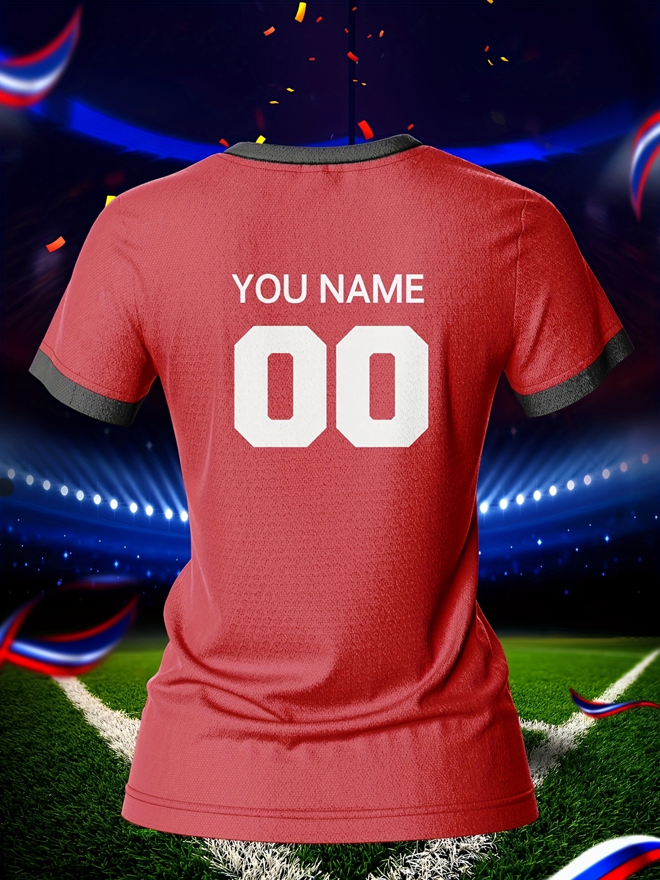 Customizable Women's V-Neck Football Jersey Top - Personalized Name & Number, Breathable, Quick-Drying, Polyester, Ideal for Team Training & Casual Wear, Football Accessories